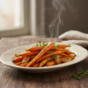 Diese aromatischen Honig-Möhren sind eine vielseitige Gemüsebeilage. Zarte Karotten werden in einer glänzenden Sauce aus Butter, Honig und Thymian geschwenkt, bis sie bissfest und leicht karamellisiert sind. Durch einen Spritzer Zitrone erhalten sie eine frische Balance zur Süße.