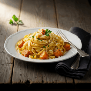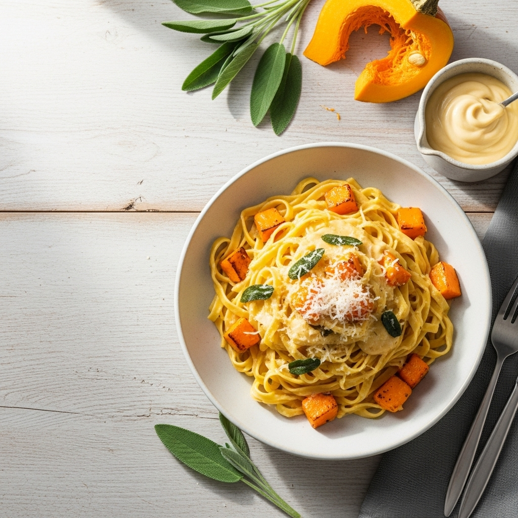 Herbstliche Tagliatelle mit Kürbis in samtiger Béchamelsauce