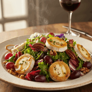 Dieser herbstliche Salat mit Trauben ist die Definition einer perfekt ausbalancierten Mahlzeit. Er kombiniert die pfeffrige Frische von Feldsalat mit der intensiven Süße roter Trauben, der cremigen Säure von Ziegenkäse und dem tiefen, erdigen Aroma gerösteter Walnüsse. Das Ergebnis ist kein einfacher Blattsalat, sondern eine Komposition aus Texturen und Aromen, die präzise aufeinander abgestimmt sind. In diesem Beitrag erhältst Du nicht nur das Rezept, sondern auch das technische Wissen, um jeden Schritt zu meistern – von der Auswahl der richtigen Zutaten bis zur perfekten Emulsion des Dressings. Wir erklären die chemischen Prozesse hinter dem Rösten von Nüssen und warum die Reihenfolge beim Anrichten des Salats entscheidend für das Endergebnis ist.
