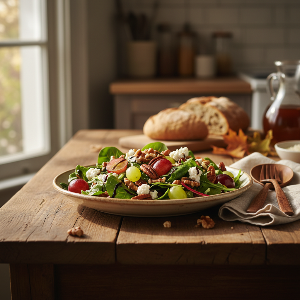 Dieser herbstliche Salat mit Trauben ist die Definition einer perfekt ausbalancierten Mahlzeit. Er kombiniert die pfeffrige Frische von Feldsalat mit der intensiven Süße roter Trauben, der cremigen Säure von Ziegenkäse und dem tiefen, erdigen Aroma gerösteter Walnüsse. Das Ergebnis ist kein einfacher Blattsalat, sondern eine Komposition aus Texturen und Aromen, die präzise aufeinander abgestimmt sind. In diesem Beitrag erhältst Du nicht nur das Rezept, sondern auch das technische Wissen, um jeden Schritt zu meistern – von der Auswahl der richtigen Zutaten bis zur perfekten Emulsion des Dressings. Wir erklären die chemischen Prozesse hinter dem Rösten von Nüssen und warum die Reihenfolge beim Anrichten des Salats entscheidend für das Endergebnis ist.