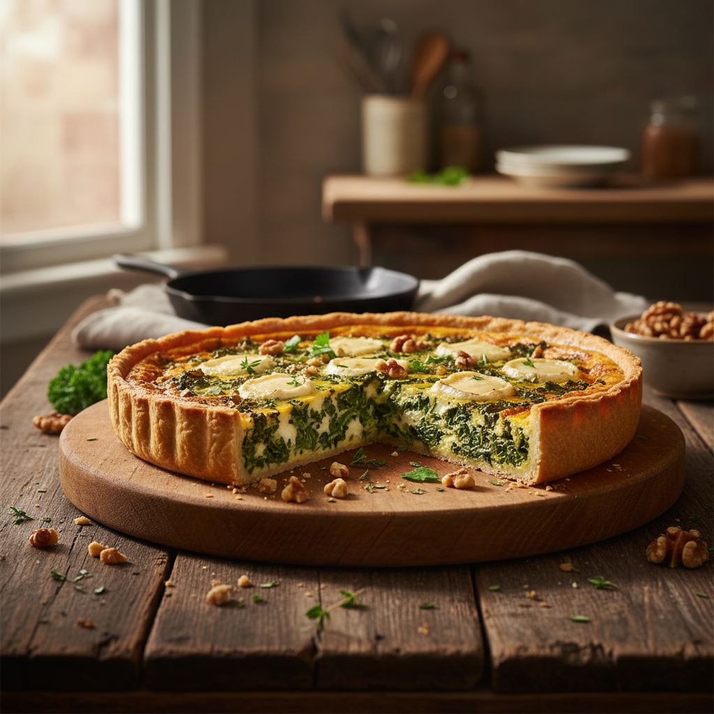 Herzhafte Grünkohl Quiche mit Ziegenkäse & Walnüssen