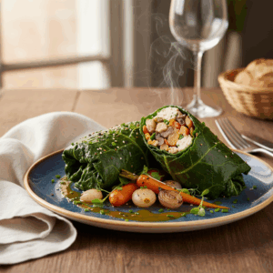 Klassische Rouladen sind ein Grundpfeiler der deftigen Küche. Dieses Rezept interpretiert den Klassiker neu und schafft eine rein pflanzliche, nährstoffreiche Variante, die geschmacklich und texturell überzeugt. Die Grünkohl-Rouladen mit Linsen-Pilz-Füllung kombinieren die erdigen, leicht herben Noten des Grünkohls mit einer Füllung, die durch Linsen, Pilze und Walnüsse eine komplexe Textur und tiefe Umami-Aromen erhält. Statt einer schweren, fetthaltigen Sauce setzen wir auf eine leichte, fruchtige Tomatensauce, die das Gericht ausbalanciert. In diesem Beitrag erhältst du nicht nur eine präzise Schritt-für-Schritt-Anleitung, sondern auch das technische Wissen, um jeden Schritt zu meistern – vom korrekten Blanchieren des Grünkohls bis zur perfekten Konsistenz der Füllung. Wir erklären die Funktion jeder Zutat und die kulinarischen Prinzipien, die dieses Gericht zu einem Erfolg machen.