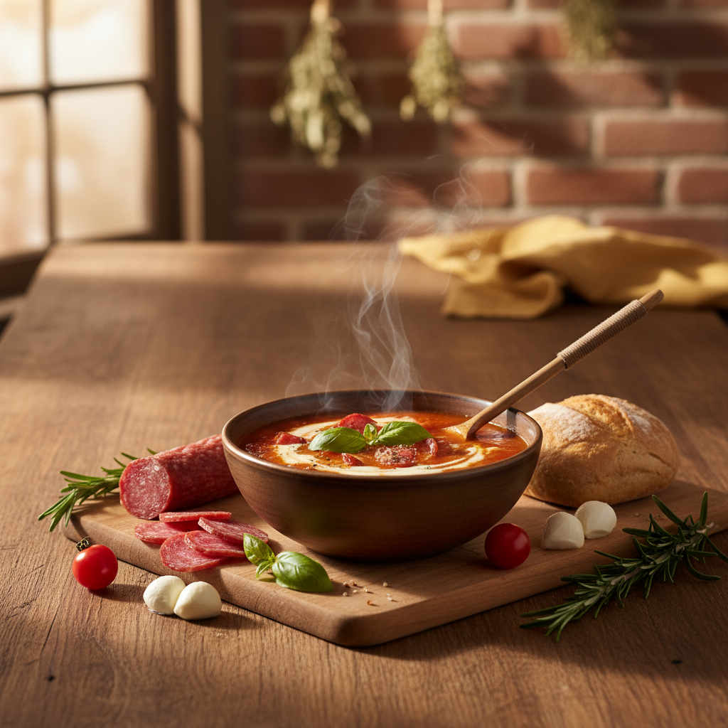 Die herzhafte Pizzasuppe kombiniert die beliebtesten Aromen einer klassischen Pizza in einem wärmenden, unkomplizierten Eintopf. Dieses Rezept ist nicht nur eine schnelle Lösung für ein Abendessen unter der Woche, sondern auch ideal für die Bewirtung von Gästen. Es basiert auf einfachen Zutaten, deren volles Potenzial durch gezielte Zubereitungstechniken entfaltet wird. In diesem Beitrag erhältst du nicht nur eine Schritt-für-Schritt-Anleitung, sondern auch das nötige Hintergrundwissen zur Aromenentwicklung und zur optimalen Auswahl der Zutaten. Wir analysieren, warum das korrekte Anbraten der Basis entscheidend ist und wie du die Konsistenz und den Geschmack deiner Pizzasuppe mit Salami und Mozzarella präzise steuern kannst.