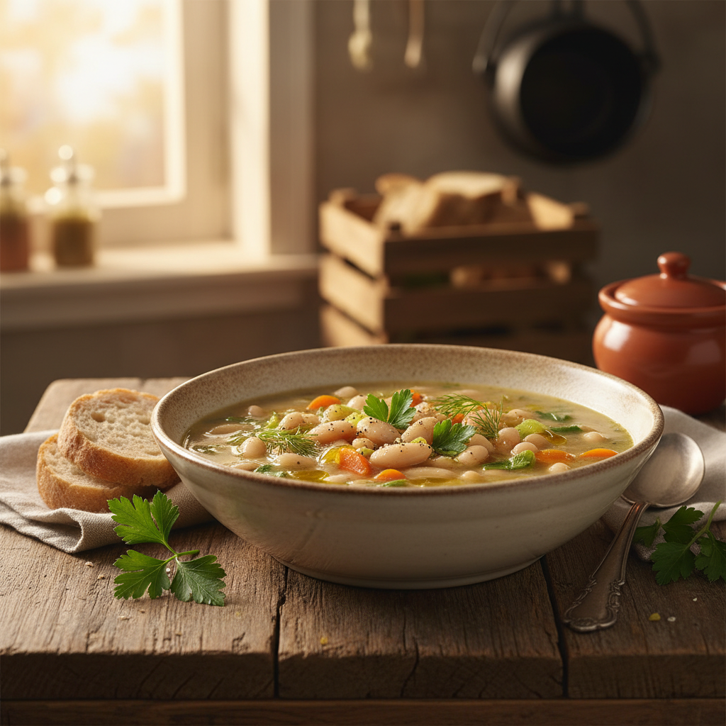 Herzhafte Weiße Bohnensuppe mit Gemüse