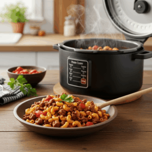 Die Verwendung eines Schnellkochtopfs (wie z.B. eines Instant Pot) ist für dieses amerikanische Gulasch mehr als nur eine Zeitersparnis. Sie verändert die Zubereitung auf fundamentaler Ebene und führt zu einem qualitativ besseren Ergebnis. Unter hohem Druck und bei Temperaturen über dem normalen Siedepunkt von 100 °C laufen chemische Prozesse beschleunigt ab. Die Maillard-Reaktion, die bereits beim Anbraten des Hackfleischs für Röstaromen sorgt, wird in der Druckphase intensiviert. Aromen von Tomaten, Brühe und Gewürzen verbinden sich tiefgreifender und durchdringen Fleisch sowie Nudeln vollständig. Gleichzeitig werden die Nudeln direkt in der Sauce gegart. Die dabei freigesetzte Stärke bindet die Flüssigkeit und erzeugt eine natürliche, sämige Konsistenz, ganz ohne den Einsatz von Mehl oder Speisestärke. Das Resultat ist ein Gericht, dessen Geschmackskomplexität an stundenlang geschmorte Speisen erinnert.