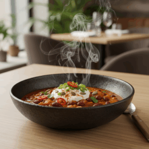 - Aufwärmen: Erwärme das Chili langsam bei mittlerer Hitze in einem Topf. Gib bei Bedarf einen kleinen Schuss Wasser oder Gemüsebrühe hinzu, falls es zu stark eingedickt ist.