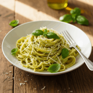 - Servieren: Die Linguine mit Basilikum-Sahnesauce sofort auf vorgewärmten Tellern anrichten. Mit dem beiseitegelegten frischen Basilikum und zusätzlichem frisch geriebenen Parmesan garnieren und genießen.