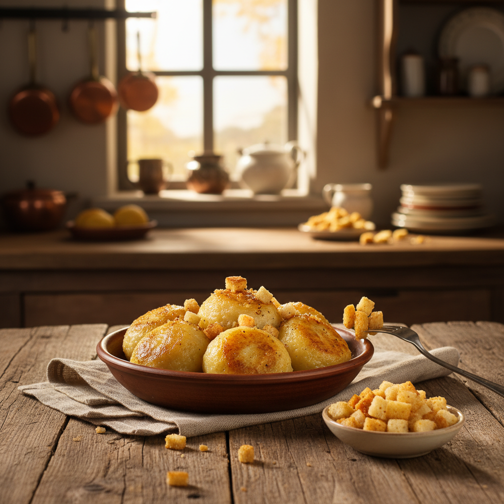 Klassische Thüringer Klöße mit gerösteten Semmelwürfeln