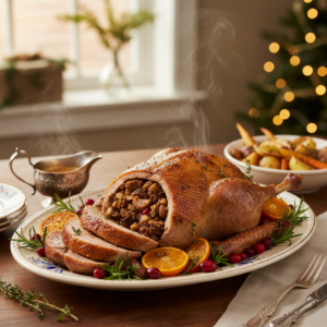 Klassische Weihnachtsgans mit knuspriger Haut und Apfelfüllung