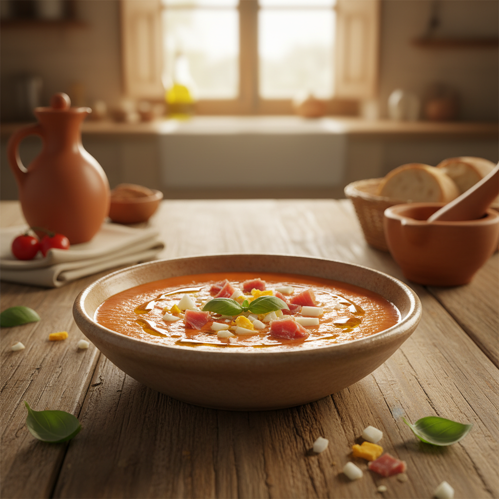Salmorejo Cordobés ist mehr als nur eine kalte Suppe; es ist ein kulinarisches Symbol der andalusischen Küche, speziell aus Córdoba. Seine charakteristische, dichte und samtige Textur entsteht nicht durch Milchprodukte, sondern durch eine präzise kulinarische Technik: die Emulsion von Tomaten, Brot und hochwertigem Olivenöl. Dieses Rezept führt dich exakt durch die Schritte, die für einen authentischen Salmorejo notwendig sind. Du lernst nicht nur die Zubereitung, sondern verstehst auch die wissenschaftlichen Hintergründe, die dieses einfache Gericht so raffiniert machen. Wir konzentrieren uns auf die Qualität der Zutaten und die entscheidenden Handgriffe, die eine perfekte Konsistenz garantieren. Das Ergebnis ist eine erfrischende, sättigende und geschmacksintensive Suppe, die ideal für warme Tage ist und als Vorspeise oder leichtes Hauptgericht dient.