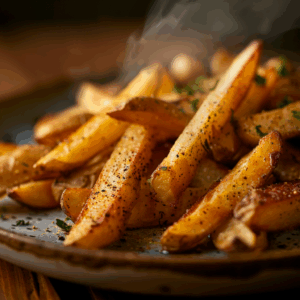 Außen goldbraun und knusprig, innen weich und kartoffelig – so gelingen Pommes aus frischen Kartoffeln in der Heißluftfritteuse. Eine aromatische und unkomplizierte Beilage, die mit wenig Öl zubereitet wird und durch eine ausgewogene Würzmischung überzeugt.