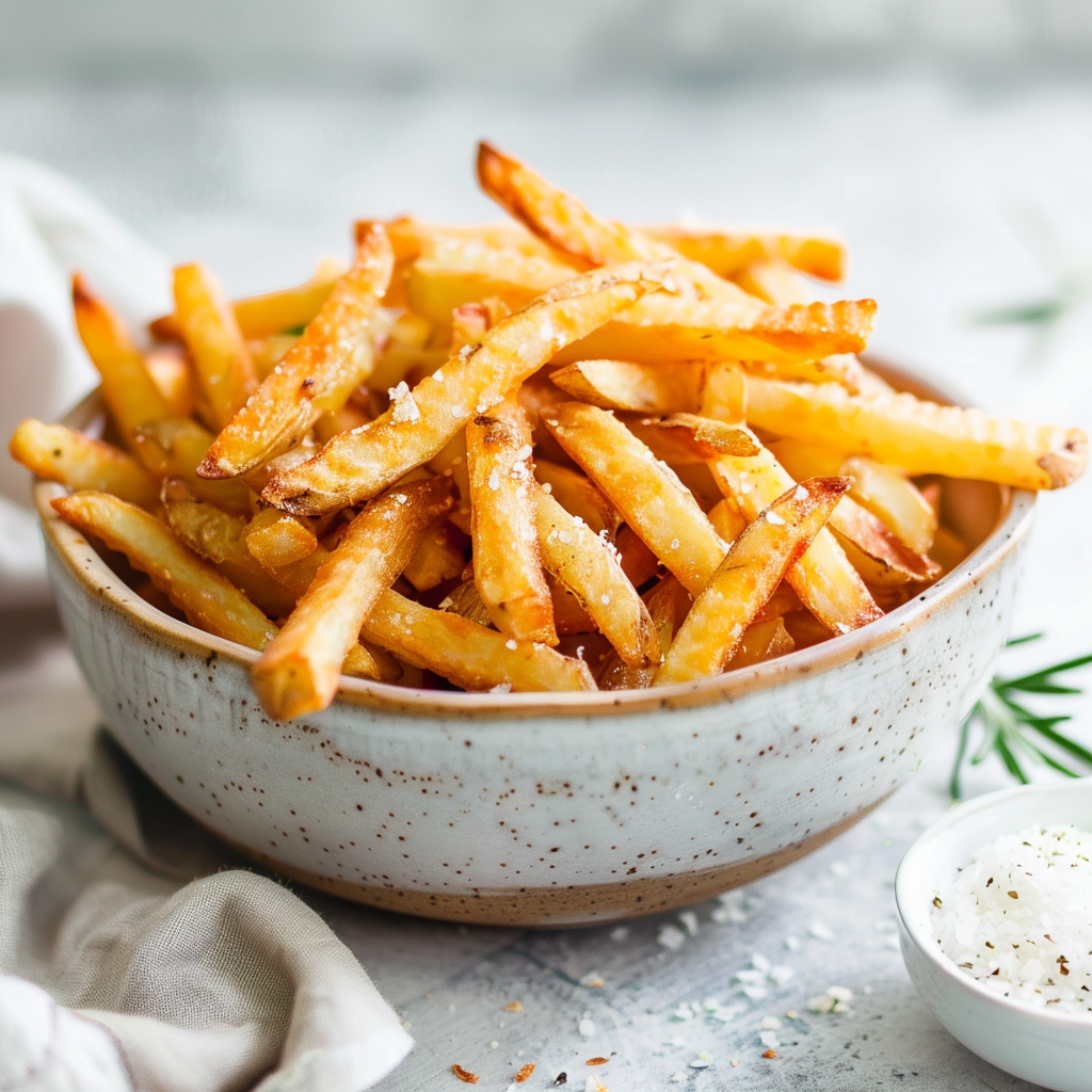 • Servieren: Die fertigen Pommes aus dem Korb nehmen, nach Belieben mit etwas zusätzlichem Salz bestreuen und sofort heiß servieren. Dazu passen Dips wie Mayonnaise, Ketchup oder eine würzige Aioli.