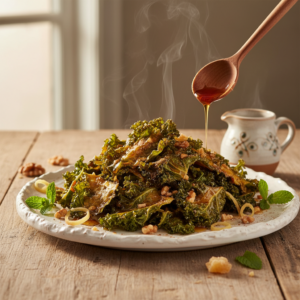 Viele Versuche scheitern an labbrigen Blättern oder verbranntem Zucker. In diesem Beitrag lernst Du, wie Du dem Grünkohl das Wasser entziehst, die Marinade gleichmäßig emulgierst und den Backvorgang so steuerst, dass ein stabiles, krosses Ergebnis entsteht. Diese Zubereitung eignet sich hervorragend als ballaststoffreicher Snack für zwischendurch oder als knuspriges Topping für herbstliche Suppen und Bowls.