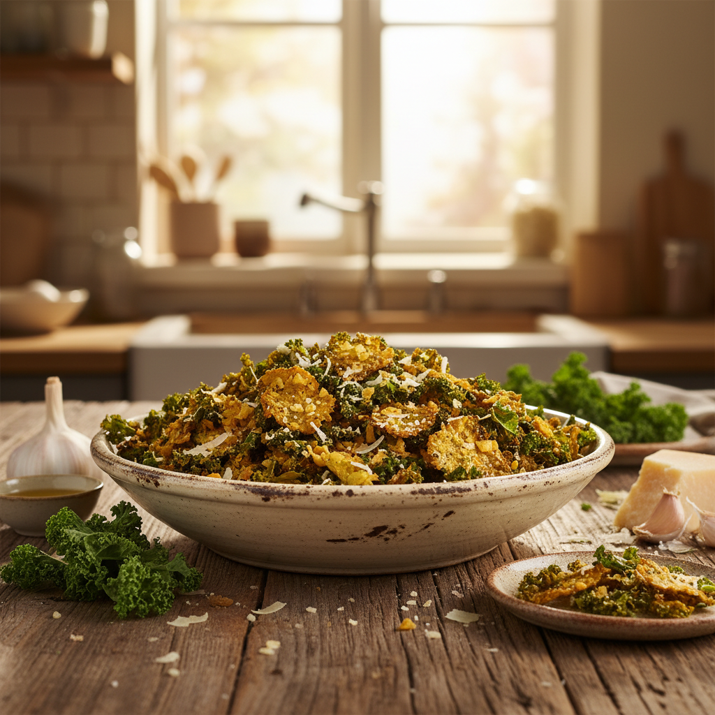 Wer nach einer gesunden, nährstoffreichen Alternative zu klassischen Kartoffelchips sucht, kommt an selbstgemachten Grünkohl-Chips nicht vorbei. Oft scheitert die Zubereitung zu Hause jedoch an zwei Faktoren: Die Chips bleiben labbrig oder werden bitter. Dieses Rezept löst diese Probleme durch eine präzise Temperaturwahl von 140 °C Umluft und eine optimierte Vorbereitung des Kohls. Durch die Kombination von herzhaftem Parmesan, Knoblauch und frischem Zitronenabrieb entsteht ein komplexes Geschmacksprofil, das weit über bloßes Salzen hinausgeht. In diesem Artikel lernst du die technische Basis für dauerhaft knusprige Ergebnisse kennen.