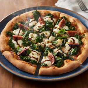 Knusprige Pizza mit Grünkohl, Ziegenkäse und Feigen