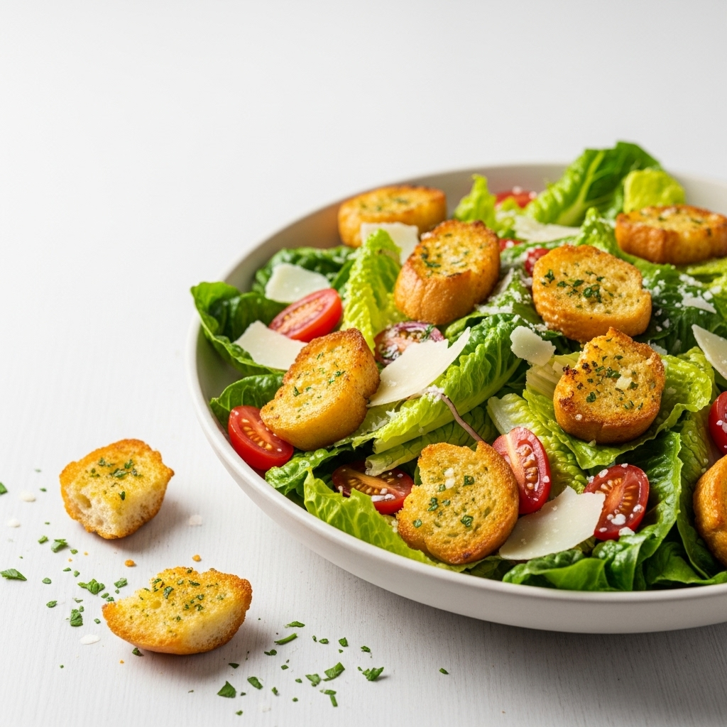 - Schlüssel-Tipp: Die noch warmen Knoblauchbrot-Würfel direkt vor dem Servieren unterheben, damit sie das Dressing aufsaugen, ohne ihre Struktur zu verlieren.