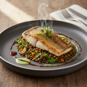 Die Kombination aus einem knusprig gebratenen Zanderfilet und erdig-säuerlichen Balsamico-Linsen ist ein Klassiker der gehobenen Bistro-Küche. Der Reiz dieses Gerichts liegt im Kontrast: Das feste, magere Fleisch des Süßwasserfisches trifft auf die sämige Konsistenz der Hülsenfrüchte. Entscheidend für den Erfolg sind hierbei zwei technische Faktoren: Die exakte Steuerung der Hitze beim Braten des Fisches, um eine krosse Haut ohne übergartes Fleisch zu erzielen, und das korrekte Bindungsverhältnis bei den Linsen durch die Montage mit kalter Butter. Dieser Beitrag führt dich detailliert durch die Zubereitung und erklärt die lebensmittelchemischen Hintergründe, damit das Ergebnis präzise und reproduzierbar gelingt. Wir verzichten auf unnötige Komplexität und fokussieren uns auf handwerkliche Präzision.