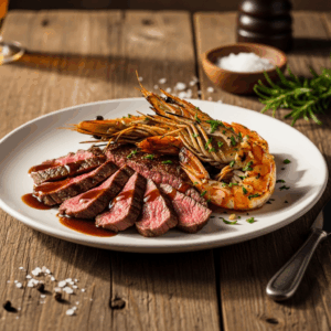 Mediterrane Bavette mit saftigen Gambas in Knoblauch-Weißwein-Sauce
