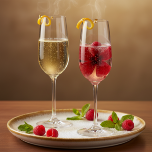- Alkoholfrei: Ersetze den Champagner durch einen hochwertigen, trockenen Traubensecco oder einen Sparkling Tea (z.B. auf Basis von Verveine oder Jasmin), um die Komplexität zu erhalten.