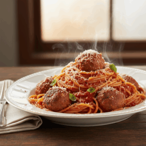 Ein herzhaftes und wärmendes Gericht, das saftige, hausgemachte Hackbällchen in einer reichhaltigen, aromatischen Tomatensauce vereint. Serviert mit al dente gekochten Spaghetti, ist dies ein klassisches Wohlfühlessen für die ganze Familie.