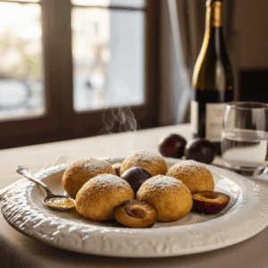 Ein klassisches Gericht der süddeutschen und österreichischen Küche: Weicher, geschmeidiger Kartoffelteig umschließt aromatische Zwetschgen. Gewälzt in goldbraun gerösteten Butterbröseln mit einer feinen Zimtnote, sind diese Knödel ein wohltuendes süßes Hauptgericht.