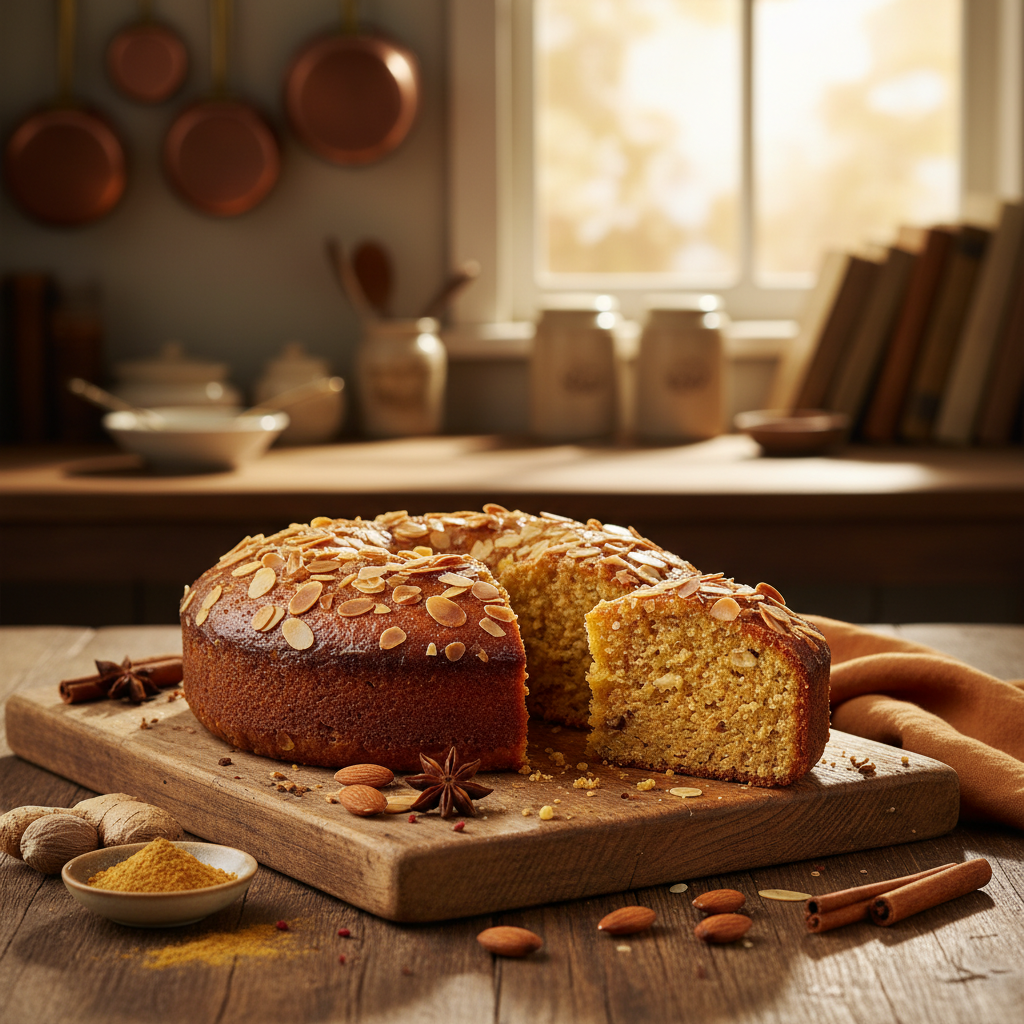 Saftiger Honigkuchen mit Mandeln und Gewürzen