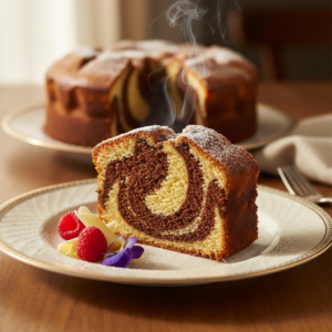 Saftiger Marmorkuchen mit dunkler Schokomarmorierung