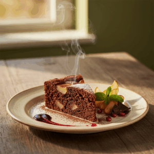 Die Qualität dieses Kuchens beruht auf dem bewussten Zusammenspiel der Komponenten. Der Kakaoteig, angereichert mit gehackter Zartbitterschokolade, liefert eine intensive, leicht herbe Kakaonote. Diese Tiefe bildet den perfekten Kontrapunkt zur fruchtigen Süße der Birnen. Während des Backens geben die Birnen einen Teil ihrer Feuchtigkeit an den Teig ab, was ihn zusätzlich saftig hält und ein Austrocknen verhindert. Gleichzeitig sorgen die eingearbeiteten Schokoladenstückchen für kleine, geschmolzene Geschmacksinseln. Das Ergebnis ist ein vielschichtiges Geschmackserlebnis, bei dem sich intensive Schokolade und milde Frucht gegenseitig ergänzen, anstatt miteinander zu konkurrieren. Die Textur ist dabei der entscheidende Faktor: ein zarter, stabiler Krümel, der die weichen Fruchtstücke sicher umschließt.