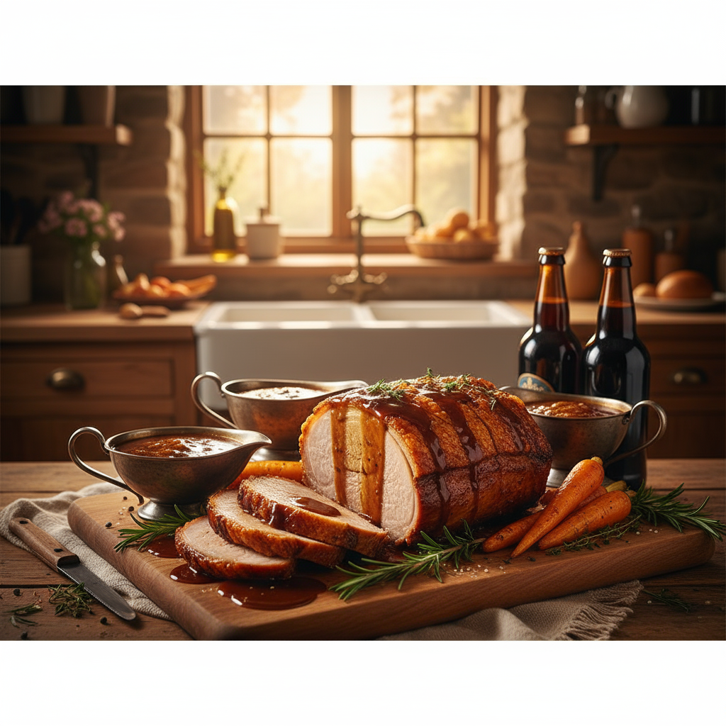 Saftiger Schweinebraten mit knuspriger Kruste und Dunkelbiersoße