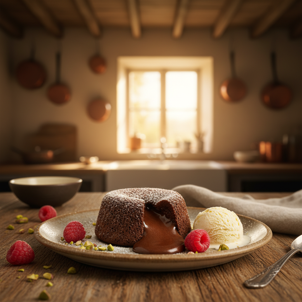 Ein Schokoladen-Malheur, in der Fachsprache auch als Fondant au chocolat bekannt, ist ein technisch präzises Gebäck, das durch den starken Kontrast seiner Texturen besticht. Das Ziel dieses Rezepts ist eine fest gebackene, stabile Kuchenhülle, die einen heißen, zähflüssigen Kern aus purer Schokolade umschließt. Der Erfolg dieser Nachspeise hängt nicht von komplexen Techniken ab, sondern von der strikten Einhaltung der Temperaturvorgaben und Backzeiten. In diesem Beitrag erfährst Du die exakten physikalischen und chemischen Vorgänge, die für das Gelingen dieses Schokoküchleins mit flüssigem Kern entscheidend sind. Du lernst, wie die Auswahl der Schokolade die Viskosität des Kerns steuert und warum das Ruhenlassen vor dem Stürzen einen strukturellen Kollaps verhindert.
