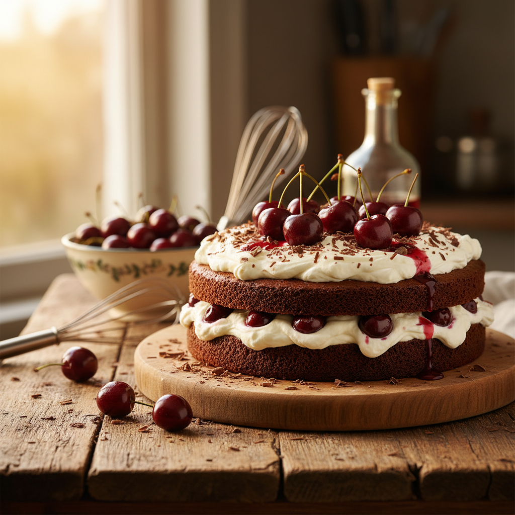 Die Schwarzwälder Kirschtorte ist ein anspruchsvoller Klassiker der Konditorkunst, der exakte Techniken erfordert. Dieses Rezept liefert dir das fundierte Wissen für einen voluminösen Schokobiskuit, eine formstabile Sahneschicht und die korrekte Bindung der Schattenmorellen. Du erfährst im Detail, warum das langwierige Aufschlagen der Eier den entscheidenden Unterschied macht, wie das Schwarzwälder Kirschwasser als Geschmacksträger fungiert und wie du ein Zusammenfallen der Tortenböden verhinderst. Durch die genaue Beachtung von Temperaturen und Rührzeiten erzielst du ein fachgerechtes Ergebnis, das durch klare Texturen und eine exzellente Balance aus Säure, Süße und Alkohol besticht.