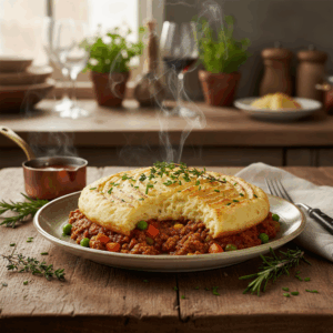 Ein original Shepherd’s Pie ist ein präzises Gericht, dessen Erfolg auf der korrekten Auswahl und Zubereitung seiner Kernkomponenten beruht: einer aromatischen Füllung aus Lammhackfleisch und einer perfekt cremigen Kartoffelhaube. Dieses Rezept „Shepherd’s Luck“ führt dich systematisch durch die Techniken, die für ein herausragendes Ergebnis unerlässlich sind. Du lernst nicht nur die Schritte, sondern auch das kulinarische „Warum“ dahinter – von der Bedeutung der richtigen Kartoffelsorte bis hin zur Erzeugung einer goldbraunen, knusprigen Kruste. Wir verzichten auf unnötige Füllstoffe und konzentrieren uns auf die Entwicklung eines tiefen, komplexen Geschmacks durch korrekte Anbrattechniken und die gezielte Auswahl von Aromaträgern. Das Resultat ist ein authentischer, handwerklich sauber zubereiteter Shepherd’s Pie, der als Referenz für dieses klassische Gericht dient.
