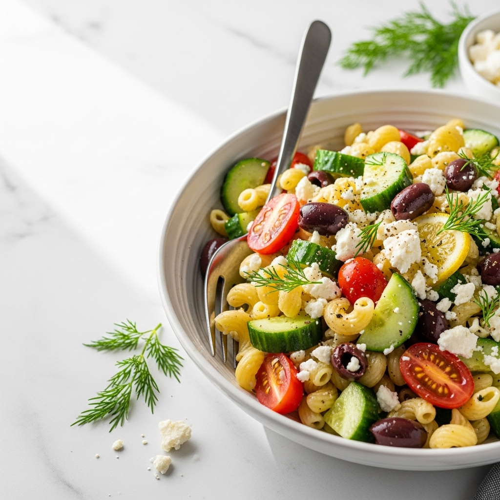 Ja, eine Zubereitung am Vortag ist möglich und kann die Aromen sogar intensivieren. Beachte jedoch, dass die Pasta über Nacht Feuchtigkeit aus dem Dressing zieht, was den Salat am nächsten Tag etwas fester und trockener machen kann. Ein Esslöffel Joghurt oder ein Schuss Olivenöl vor dem Servieren hilft, die Cremigkeit wiederherzustellen. Für die optimale Textur empfehlen wir, den Feta erst kurz vor dem Servieren unterzuheben.