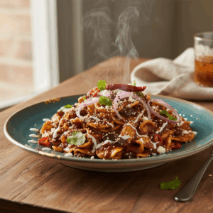 Die Kombination von Pasta mit einer würzigen Mole-Sauce mag zunächst unkonventionell erscheinen, ist aber eine geschmacklich fundierte Fusion zweier kulinarischer Welten. Dieses Rezept für würzige Chicken Mole Pasta nutzt die komplexen Aromen einer klassischen mexikanischen Mole – Schokolade, Chili und Gewürze – und verbindet sie mit der vertrauten Basis einer italienischen Pasta. Das Ergebnis ist ein Gericht mit außergewöhnlicher Tiefe, das weit über eine gewöhnliche Tomatensauce hinausgeht. In diesem Beitrag erhältst Du nicht nur eine präzise Anleitung, sondern auch das technische Hintergrundwissen, warum jeder Schritt entscheidend für eine perfekte, samtige und aromatische Sauce ist. Wir analysieren die Funktion der Zutaten und die kritischen Zubereitungstechniken, damit Dir dieses anspruchsvolle Gericht zuverlässig gelingt.