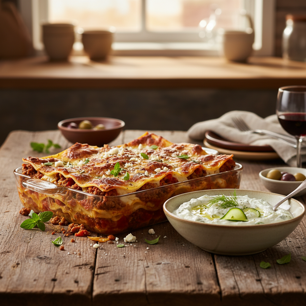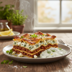 Würzige Gyros Lasagne mit cremigem Tsatsiki