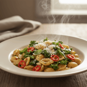 Die Pastasorte hat einen direkten Einfluss darauf, wie gut die Sauce aufgenommen wird. Orecchiette („Öhrchen“) sind ideal für dieses Rezept. Ihre konkave Form fängt kleine Stücke Grünkohl, Knoblauch und Chili perfekt auf. Andere kurze Nudelsorten mit Rillen oder Hohlräumen wie Fusilli, Rigatoni oder Penne Rigate sind ebenfalls gut geeignet.