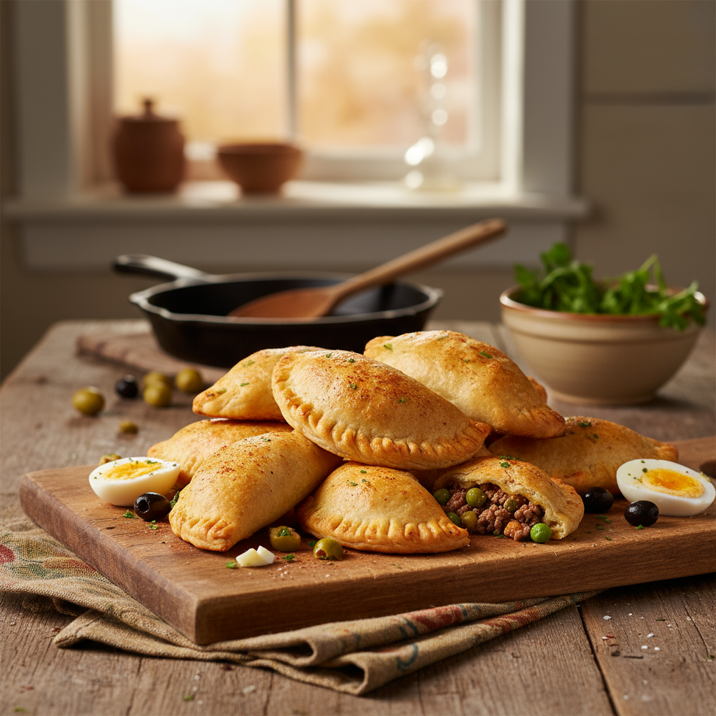 Empanadas sind weit mehr als nur gefüllte Teigtaschen; sie sind ein kulinarisches Prinzip, das auf der ganzen Welt geschätzt wird. Dieses Rezept für würzige Rindfleisch-Empanadas konzentriert sich auf eine klassische, aber technisch präzise Zubereitung, die eine saftige, hocharomatische Füllung mit einem knusprigen, goldbraunen Teig kombiniert. Die Füllung aus Rinderhackfleisch, angereichert mit der salzigen Tiefe grüner Oliven, der cremigen Textur hartgekochter Eier und der rauchigen Note von Pimentón de la Vera, bietet ein komplexes Geschmacksprofil. In diesem Beitrag erhältst Du nicht nur eine Schritt-für-Schritt-Anleitung, sondern auch das entscheidende Hintergrundwissen zu Techniken und Zutaten. Wir erklären, warum das vollständige Abkühlen der Füllung der wichtigste Schritt ist, wie Du die Empanadas perfekt versiegelst und welche Rolle jede einzelne Zutat für das Gelingen spielt. So erreichst Du ein Ergebnis, das konsistent, zuverlässig und geschmacklich überzeugt.