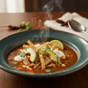 Würzige Sopa Azteca: Klassische Tortillasuppe mit gerösteten Chilis