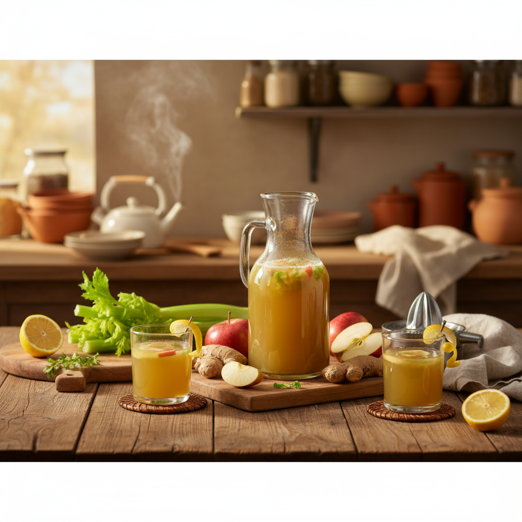 Würziger Apfel Sellerie Saft mit Ingwer und Zitrone