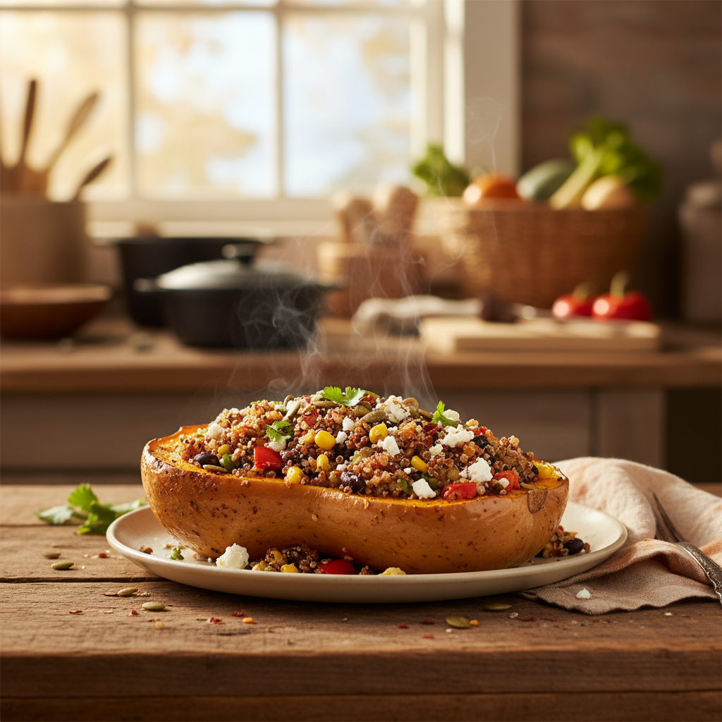 Würziger Butternut-Kürbis mit aromatischer Quinoa-Füllung