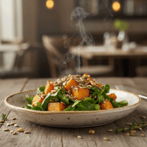 Dieser würzige Feldsalat mit geröstetem Kürbis ist mehr als nur eine Beilage. Er ist ein strukturiertes Gericht, das auf dem bewussten Zusammenspiel von Temperaturen, Texturen und Aromen basiert. Die nussige Frische des Feldsalats trifft auf die süßlich-karamellisierten Noten von im Ofen geröstetem Hokkaido-Kürbis. Abgerundet wird das Ganze durch einen knackigen Kern-Mix und eine präzise ausbalancierte Balsamico-Ahornsirup-Vinaigrette. In diesem Beitrag zerlegen wir nicht nur das Rezept, sondern erklären die kulinarischen Prinzipien, die diesen Salat zu einem herausragenden Gericht machen. Du lernst, wie du jede Komponente zur Perfektion bringst – vom Rösten des Kürbisses bis zur Herstellung einer stabilen, emulgierten Vinaigrette. Das Ergebnis ist ein verlässliches Rezept, das bei jeder Zubereitung funktioniert.