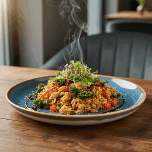 Gebratener Reis ist ein Gericht, das auf Effizienz und Geschmack ausgelegt ist. Diese Variante mit Grünkohl hebt den Klassiker auf eine neue Ebene, indem sie herzhafte, leicht erdige Noten mit dem tiefen Umami von Sojasauce und dem aromatischen Dreiklang aus Zwiebel, Knoblauch und Ingwer kombiniert. Das Ergebnis ist ein nahrhaftes und sättigendes Pfannengericht, das in unter 30 Minuten zubereitet ist. Dieser Beitrag liefert nicht nur die reinen Zubereitungsschritte, sondern erklärt die entscheidenden Techniken, die für eine perfekte Textur und ein ausgewogenes Aroma sorgen. Du erfährst, warum die Wahl des richtigen Reises fundamental ist und wie du durch die korrekte Hitzesteuerung maximale Röstaromen erzielst. Bereite dich darauf vor, gebratenen Reis technisch zu verstehen und konstant exzellente Ergebnisse zu erzielen.