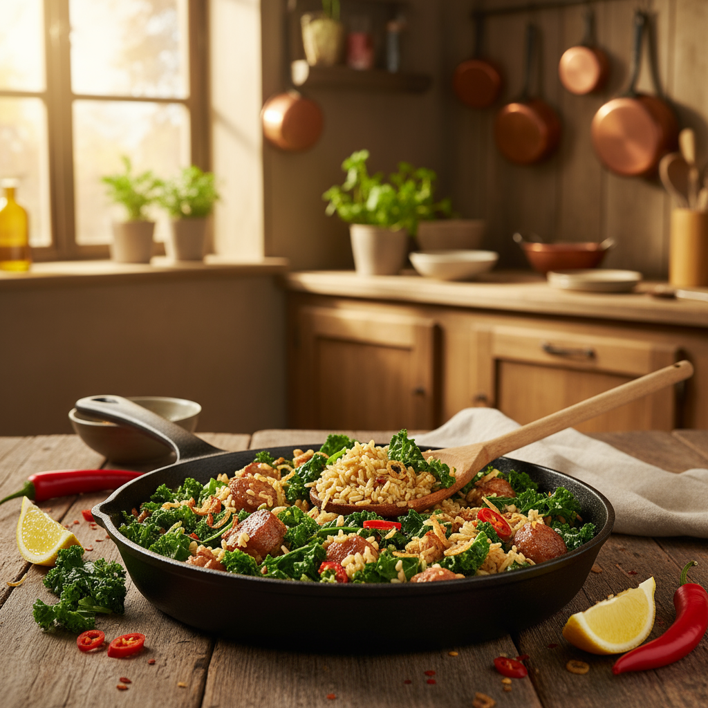 Würziger Grünkohl Reis aus der Pfanne