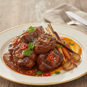 - Aufwärmen: Erwärme den Ochsenschwanz langsam bei niedriger bis mittlerer Hitze in einem Topf. Füge bei Bedarf einen kleinen Schuss Wasser oder Brühe hinzu, falls die Soße zu stark eingedickt ist. Vermeide das Aufkochen in der Mikrowelle, da das Fleisch dadurch zäh werden kann.