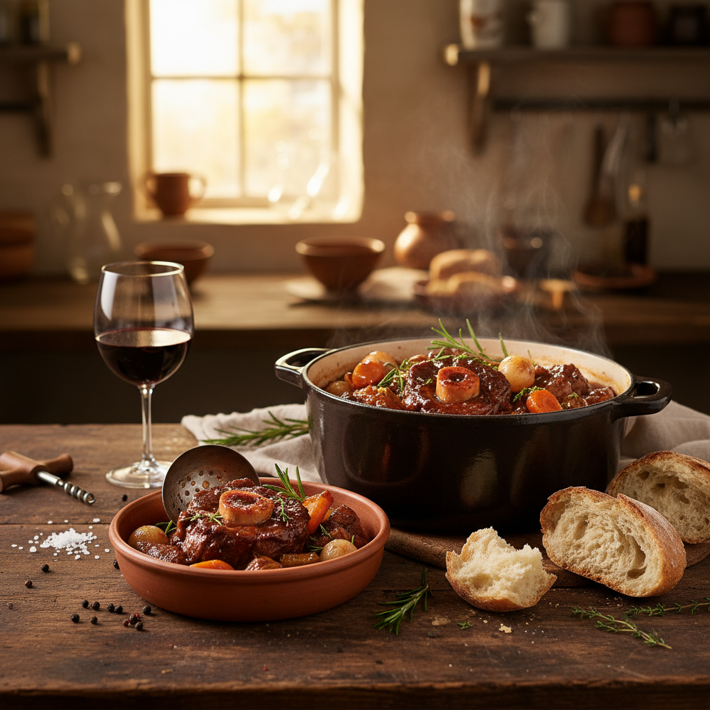 - Beilagen-Empfehlungen: Zu diesem kräftigen Gericht passen cremiges Kartoffelpüree, Polenta, breite Bandnudeln oder einfach ein frisches Baguette, um die aromatische Soße aufzutunken.