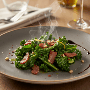 Würziger Pfannengrünkohl mit knusprigen Speckwürfeln