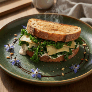 Dieses Rezept für ein würziges Grünkohl Sandwich ist mehr als nur ein einfaches Käsesandwich. Es ist eine technisch durchdachte Kombination aus herzhaftem, sautiertem Grünkohl, nussigem, perfekt schmelzendem Greyerzer Käse und der robusten Struktur von geröstetem Sauerteigbrot. Die gezielte Vorbereitung der Füllung und die richtige Grilltechnik sind entscheidend, um ein matschiges Ergebnis zu vermeiden und stattdessen eine knusprige Außenseite mit einem cremigen, geschmackvollen Kern zu erzielen. In diesem Beitrag zerlegen wir die einzelnen Komponenten und Techniken, damit Du ein Sandwich zubereitest, das in Textur und Geschmack überzeugt. Wir klären, warum die Wahl des richtigen Käses und Brotes fundamental ist und wie Du durch die richtige Hitzesteuerung die ideale Bräunung erreichst – ein Prozess, der auf der Maillard-Reaktion beruht und für die komplexen Röstaromen verantwortlich ist.