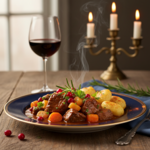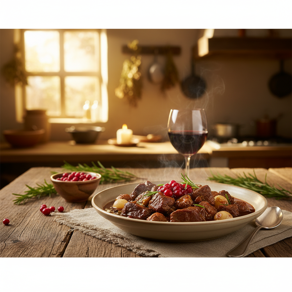 Zartes Wildgulasch mit Rotwein und Preiselbeeren