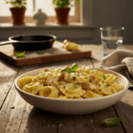 Auch in Pasta- und Risottogerichten entfaltet Rucola seine Stärken, wenn er richtig eingesetzt wird. Bei einem Risotto rührt man den gewaschenen und trockenen Rucola erst in den letzten 30 Sekunden unter, direkt nachdem Parmesan und Butter hinzugefügt wurden. Bei Pastagerichten wird der Rucola entweder zusammen mit der abgetropften Pasta in die heiße Sauce geschwenkt oder einfach unter die fertige Pasta auf dem Teller gemischt. Die Wärme genügt, um ihn leicht zusammenfallen zu lassen. Er verleiht cremigen oder tomatenbasierten Saucen eine frische, würzige Komponente. Eine einfache, aber köstliche Variante ist Pasta mit einer Sauce aus Knoblauch, Chili und Olivenöl (Aglio e Olio), die zum Schluss mit einer großen Menge Rucola und Kirschtomaten verfeinert wird.