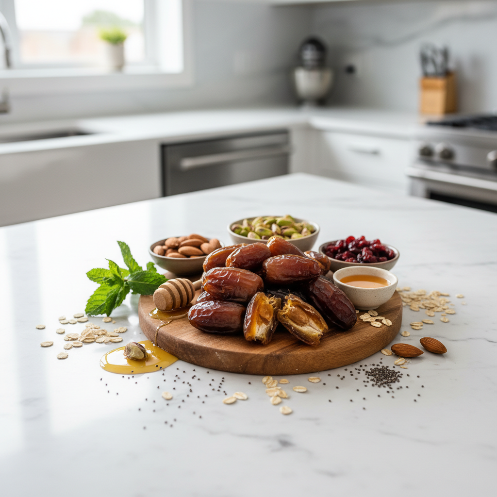 - Nährstoffdichte: Datteln liefern neben schnell verfügbarer Energie wertvolle Ballaststoffe, Kalium, Magnesium und verschiedene B-Vitamine.
